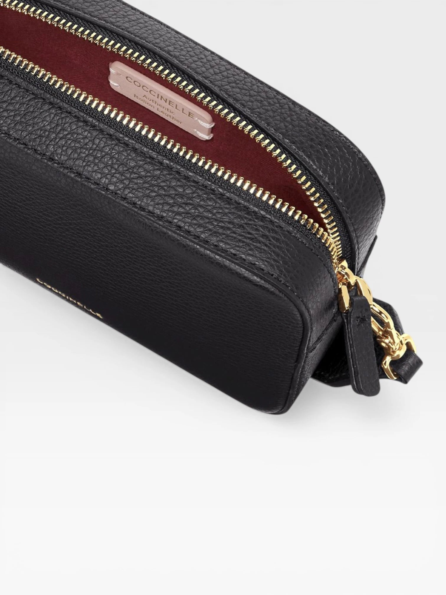 A táska hosszú, állítható bőr vállpánttal rendelkezik, így crossbody-ként viselve teljes mozgásszabadságot ad. Az elülső panelen található diszkrét, aranyozott Coccinelle felirat az olasz kézműves hagyományok és a minőség garanciája.